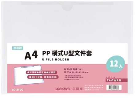 連勤LC-310C PP 橫式 A4 U型文件套 12入