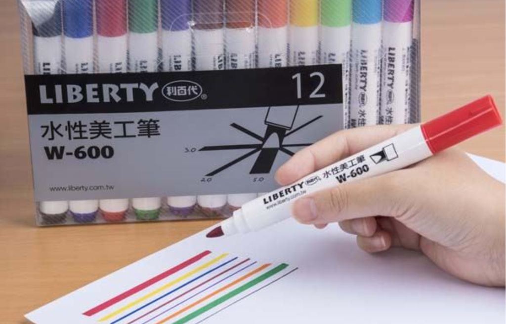 【聯全文具行】LIBERTY 利百代 W-600 水性美工筆 斜方尖 0.5~5.0mm 12色入