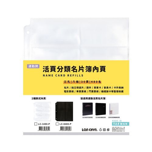 連勤 LC-3480-P PVC480名 活頁分類名片簿(內頁) 30入