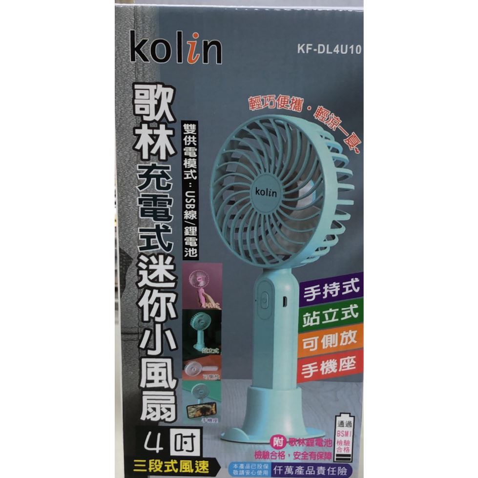 【聯全文具行】KF-DL4U10 歌林充電式迷你小風扇