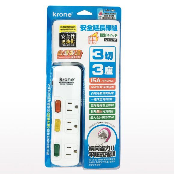 krone 3開3座 耐熱阻燃 延長線 1.8米