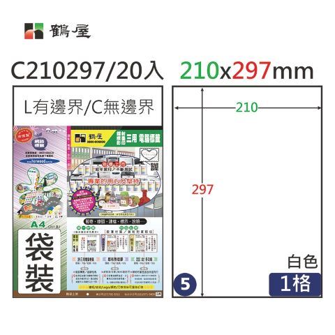 【聯全文具行】鶴屋 #005 C210297 白 1格 20入 三用標籤/210×297mm