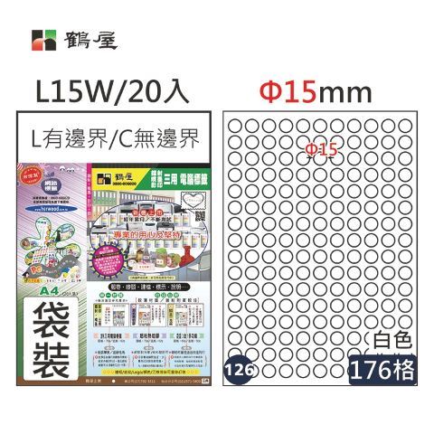 鶴屋 #126 L15W 白 176格 20入 三用標籤/Φ15mm圓