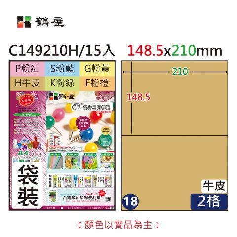 【聯全文具行】鶴屋 #018 C149210 彩色 三用電腦標籤148.5x210mm(15大張/袋裝)