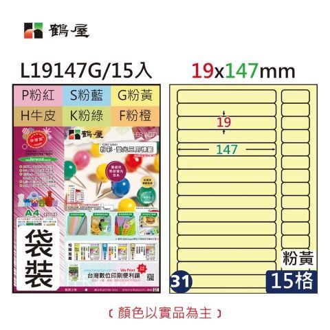 鶴屋 #031 L19147 彩色 三用電腦標籤19x147mm(15大張/袋裝)